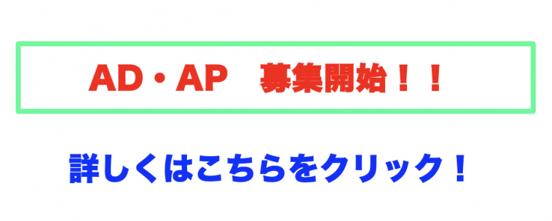 件名を「AD・AP募集」とし、履歴書(証明写真添付必須)・職務経歴書を添付の上、下記メールアドレスまでお送りください。