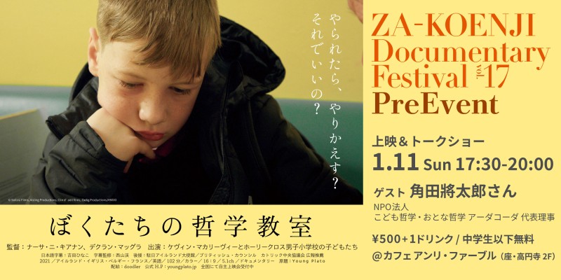 2026.2.7-2.11開催の「第17回 座・高円寺ドキュメンタリーフェスティバル」のプレイベントとして、映画『ぼくたちの哲学教室』の上映とトークイベントを開催します。