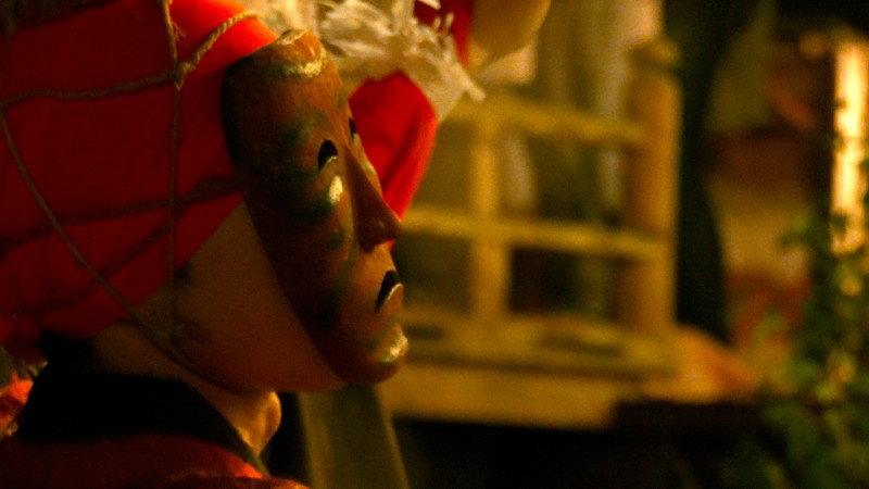 能面の眼差しが静かに感情を揺らし、